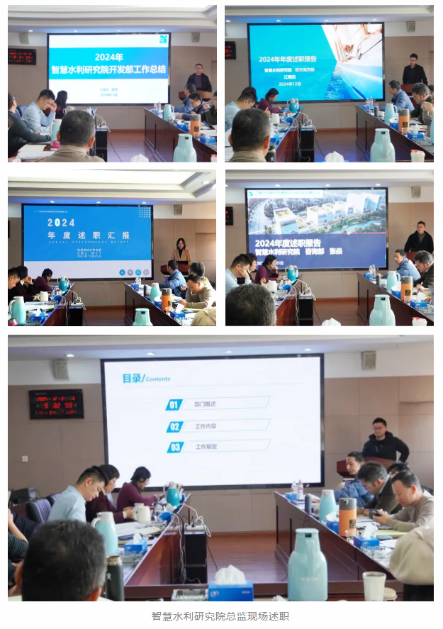 今年,自綜合部于11月下達年度考核計劃后,各部門嚴格落實《2024年度員工考核實施辦法》和各部門考核實施細則,以高度的責任感和使命感推進考核工作。在為期2日的會議中,工程院、規(guī)劃院、勘察院、建設管理院、智慧水利研究院5個生產部門和綜合部、市場部、財務部3個職能部門的負責人逐一結合本部門年度工作目標及開展情況進行年度總結工作匯報。其中,20位生產部門的所長/總監(jiān)就本項目部年度重點攻堅任務情況進行現(xiàn)場述職匯報。