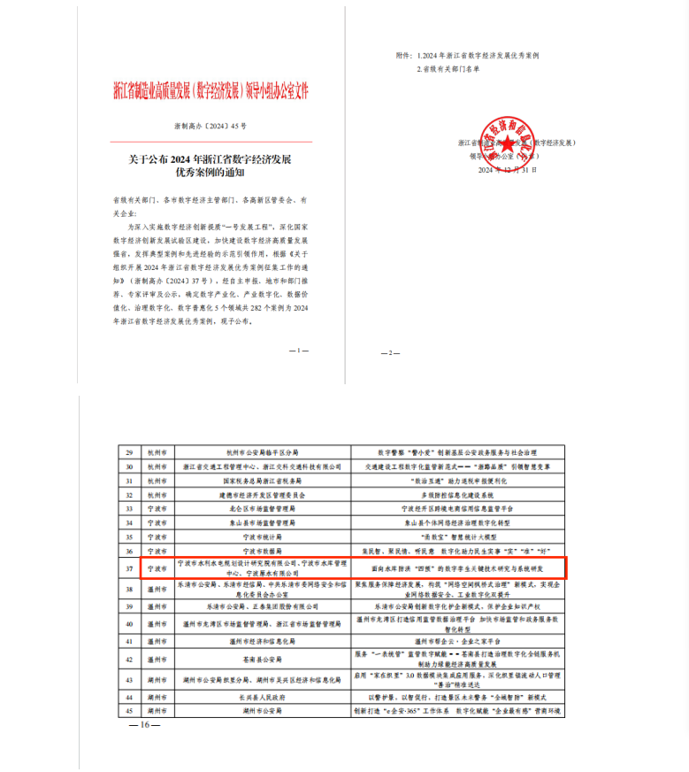近日,浙江省經濟和信息化廳發(fā)布《2024年浙江省數(shù)字經濟優(yōu)秀案例擬確定名單》并完成公示,我院與寧波市水庫管理中心、寧波原水有限公司聯(lián)合申報的“面向水庫防洪‘四預’的數(shù)字孿生關鍵技術研究與系統(tǒng)研發(fā)”案例成功入選。