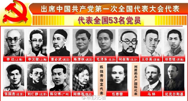 兩位共產(chǎn)國際代表出席了一大開幕會議,并發(fā)表熱情的講話。馬林首先指出:中國共產(chǎn)黨的成立具有重大的世界意義,第三國際增加了一個東方支部,蘇俄布爾什維克又多了一個親密戰(zhàn)友,并對中共提出了建議和希望。尼科爾斯基介紹了共產(chǎn)國際遠(yuǎn)東局的情況,要求中共把工作進(jìn)程及時報告遠(yuǎn)東局。