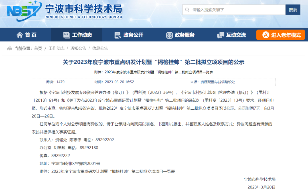 喜報(bào) | 我院又一項(xiàng)目入選2023年度寧波市重點(diǎn)研發(fā)計(jì)劃!