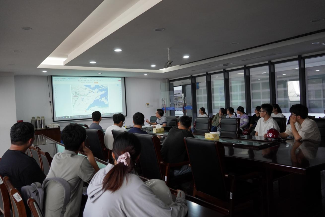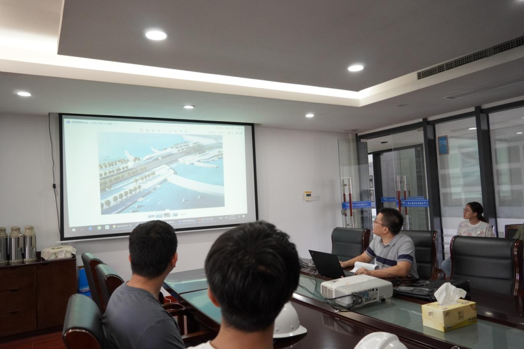 接著,研學(xué)隊(duì)伍來到會(huì)議室,胡經(jīng)理結(jié)合建設(shè)目標(biāo)、工程建設(shè)客觀因素、工程效益和景觀效果,詳細(xì)講解設(shè)計(jì)思路、問題對策和創(chuàng)新點(diǎn),為大家上了一堂嚴(yán)謹(jǐn)生動(dòng)的復(fù)盤課。比如海堤采用緩坡入海,外側(cè)采用異形結(jié)構(gòu)塊消浪,內(nèi)坡采用生態(tài)水工磚美化,使海堤具備結(jié)構(gòu)和生態(tài)景觀雙重效果;船閘與海堤銜接段軟土處理采用新型技術(shù)應(yīng)用——樁網(wǎng)復(fù)合地基,形成“樁-網(wǎng)-土”協(xié)同工作共同承載的復(fù)合工藝。在座職工認(rèn)真聆聽梅山灣如何從曾經(jīng)的“漲潮黃沙水,落潮滿目泥”到如今的“水清、岸綠、波寧、潮平”,受益匪淺。